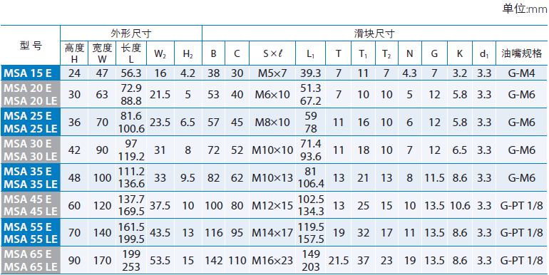 MSA30E詳細參數如下圖所示: