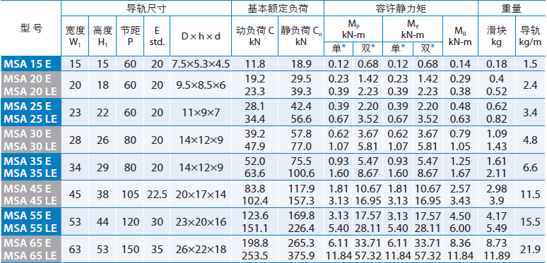 PMI-銀泰直線導(dǎo)軌MSA30LE滑塊是一款法蘭加長型滑塊,也叫帶耳朵的滑塊,滑塊的尺寸為119.2*90,滑塊上有4個M10的螺紋孔,其孔距為72*52,MSA30LE滑軌的安裝孔距為80,MSA30LE滑塊與滑軌的組合高度為42。所有尺寸完全與臺灣上銀直線導(dǎo)軌HGW30HC相同。兩者之間可相互替換,在防塵方面,銀泰直線導(dǎo)軌比上銀直線導(dǎo)軌做得更佳出色。