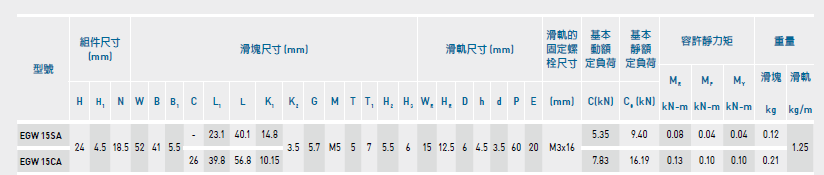 上銀滑塊EGW15CA參數(shù)和實物圖: